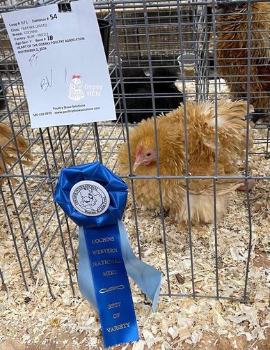 BV, R.AOV – Frizzle Gold Laced Cochin Bantam Hen