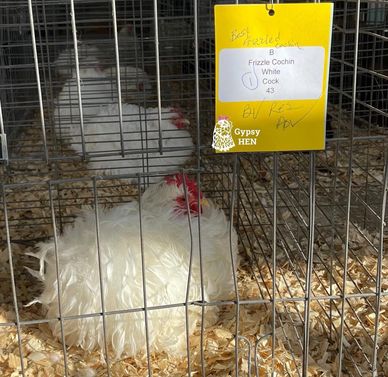 R.AOV, BV - Frizzle White Cochin Bantam Cock